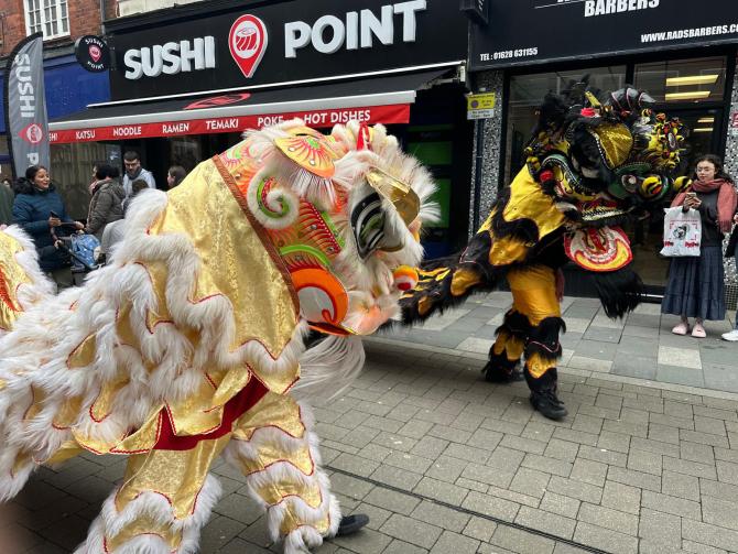 The parade turned around outside the Card Factory store and made its way back to the Boy and the Boat statue where the dancing lions put on a performance to conclude the display.