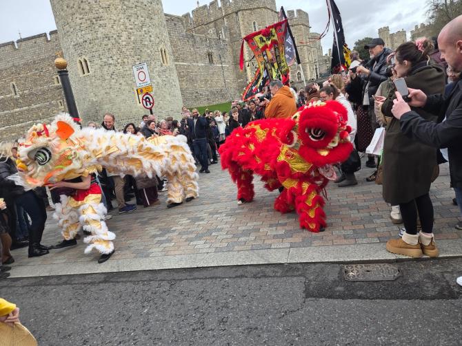 Thousands of spectators watched on as colourful lions danced through the town centres of Maidenhead and Windsor on Saturday as part of the annual Lunar New Year parade.