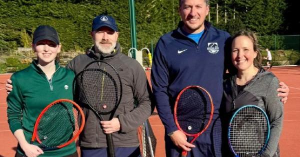 Playing on clay, David Hunte and Fiona Huggard laid down an early marker with a 6-3, 6-2 win against Bracknell’s first pair. James Cudd and Lizzie Miles then produced the turnaround of the day. Trailing 5-1 against the second pair, they dug in and clawed their way back to take the set 7-5 before pushing on to win the second 6-2.